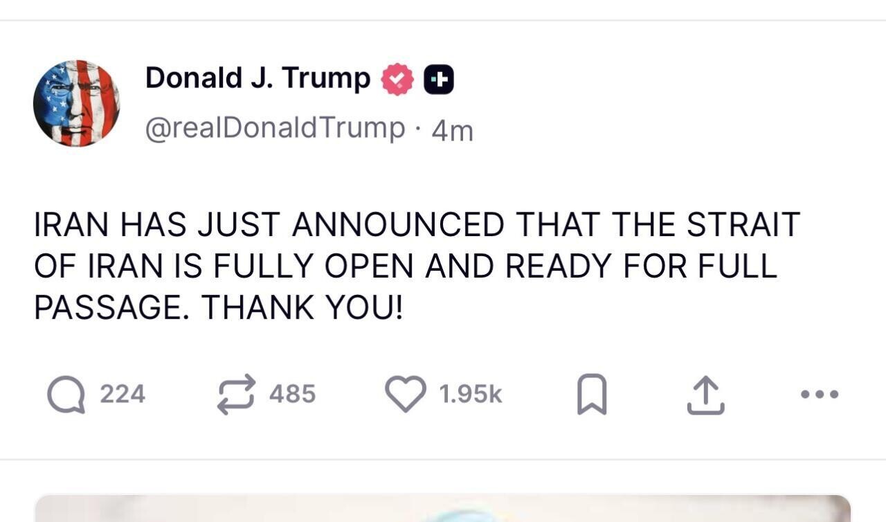 트럼프:이란이 이란해협 완전 개방이라고 발표! 땡큐